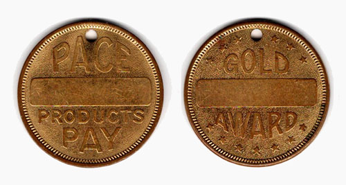 Original, brass. Generic jackpot gold award token. Stamped $50.00. Each has incuse
