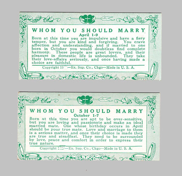 New old stock fortune cards, made by Exhibit Supply in the 1930s.